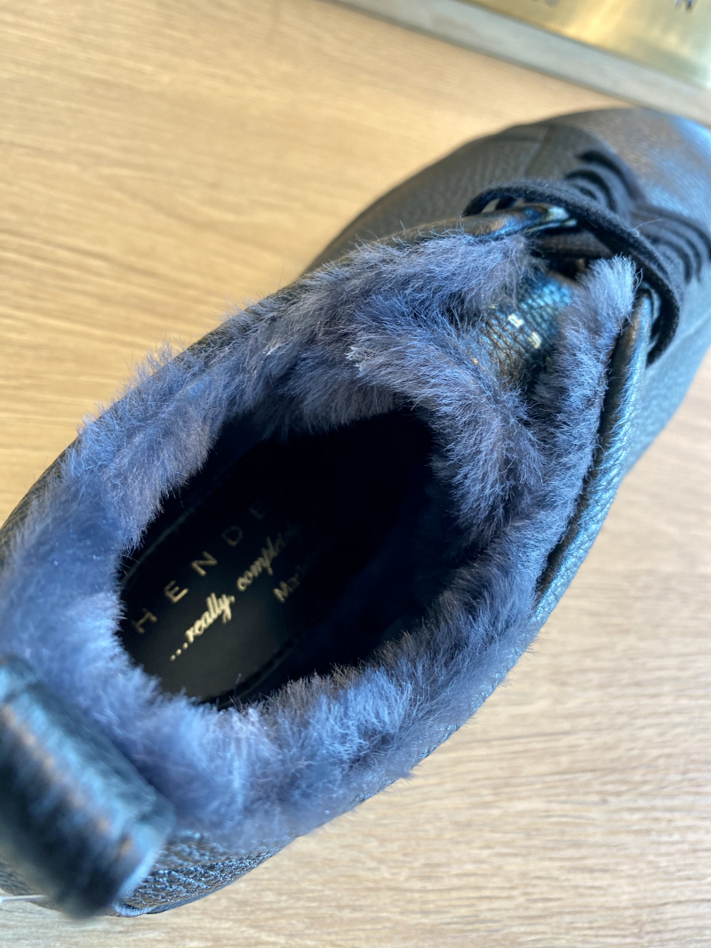 Questa è una variazione della sneaker icona HENDERSON, CONNOR, la pelle di cervo superficiale e shearling interno.